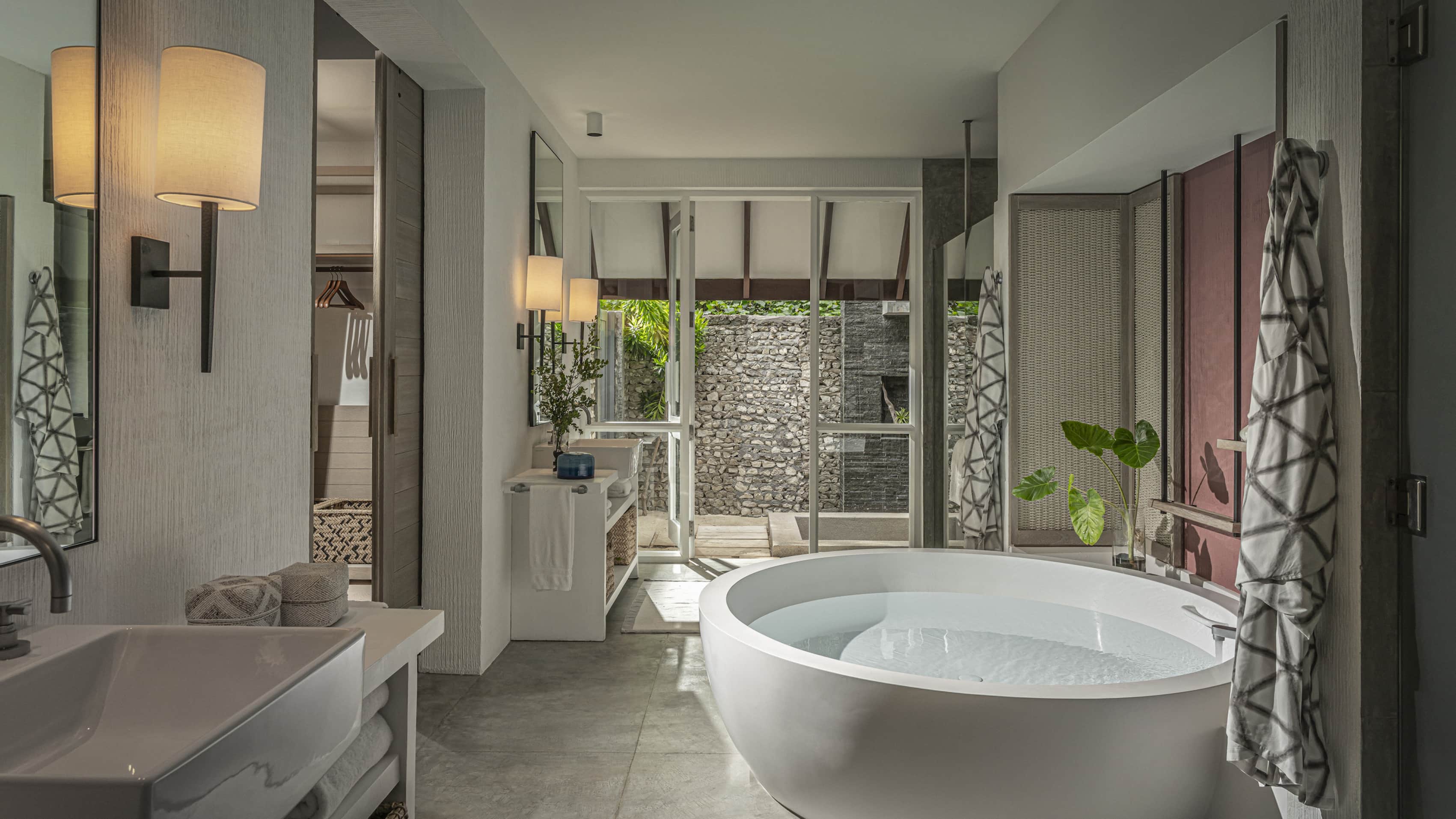 A luxurious and private retreat featuring a spacious 168 sqm area with lush garden and ocean views, a 12-meter private pool, direct beach access, and lavish outdoor living spaces including a lounging net and garden shower. Equipped with a king or twin beds plus sofabed, modern entertainment system, organic bath amenities, and premium Wi-Fi.