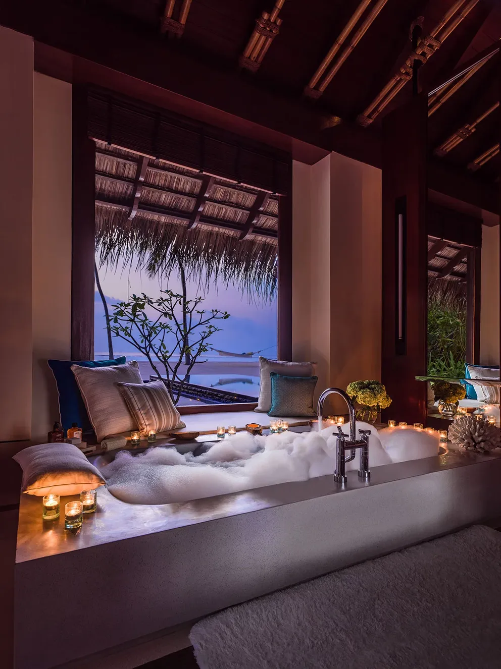 The villas feature spacious interiors and expansive outdoor areas, combining contemporary style with traditional Maldivian architecture. Amenities include high ceilings, large soaking tubs, indoor and outdoor showers, private verandas or decks, and many villas come with private pools, offering an exclusive and luxurious experience.