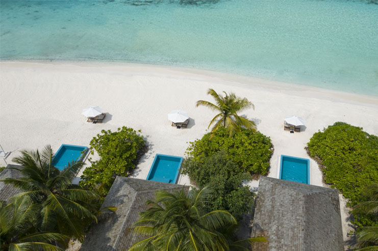 Each villa is designed with a minimalist and sophisticated aesthetic, incorporating natural elements of stone and wood to blend seamlessly with the environment. Amenities include flat-screen satellite TVs, king-size beds, walk-in and outdoor "under the stars" showers, bathtubs, generous wardrobes, room-controlled air conditioning, and high-speed Wi-Fi. Seventy of the villas feature private pools overlooking the ocean.