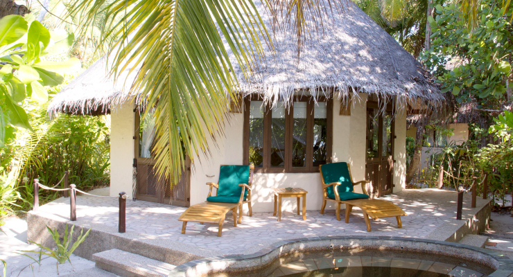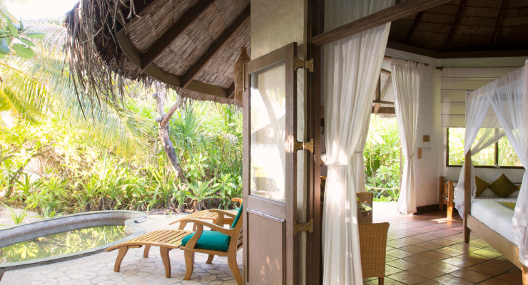 These villas offer a luxurious setting with a sunken bath and outdoor shower nestled in a private garden.
