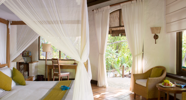 Nestled amidst lush greenery and just steps away from the beach, these villas offer a serene retreat with rustic charm.