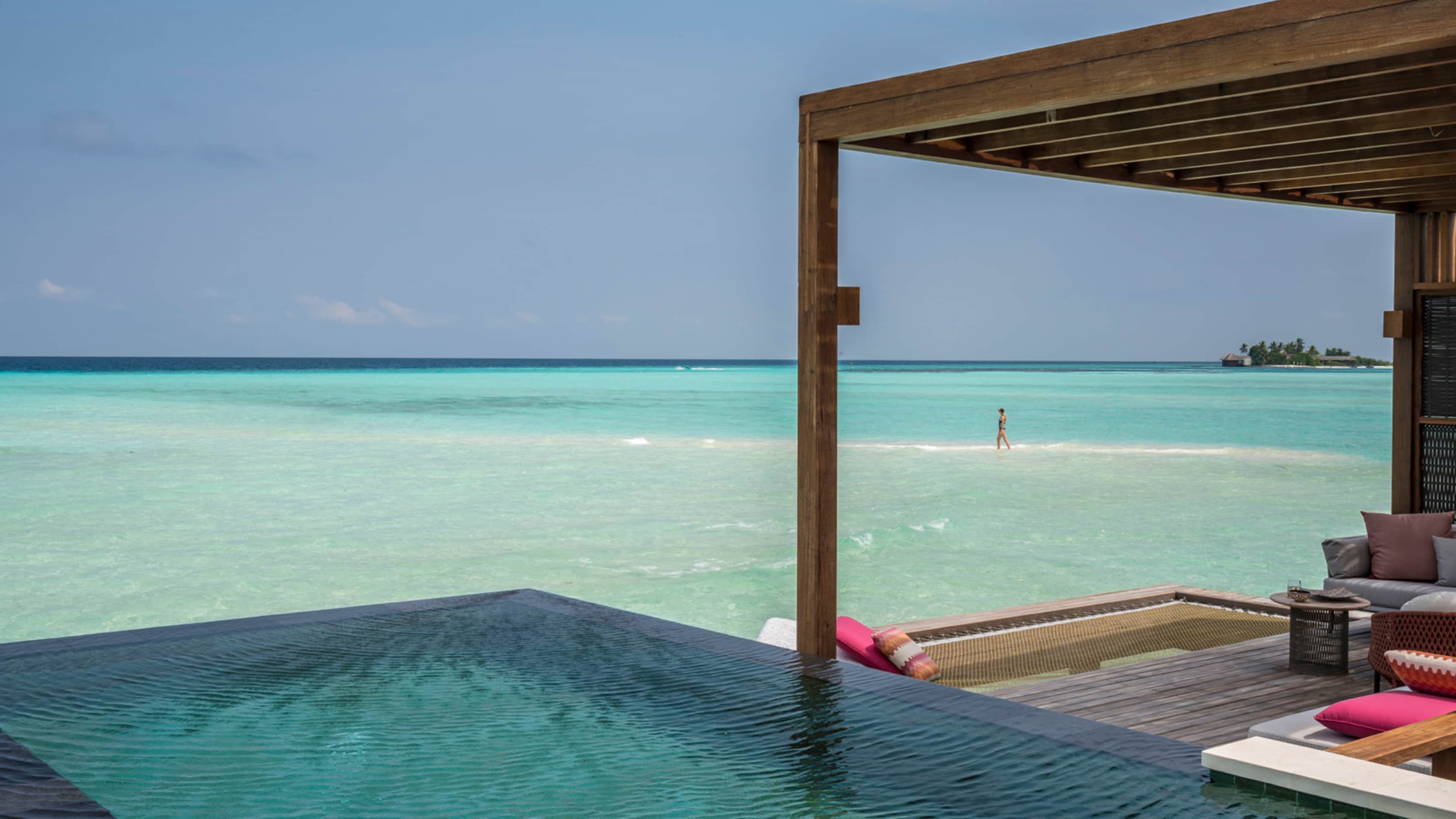 Experience the magic of Maldivian sunsets from this overwater villa featuring a private pool and a spacious deck.