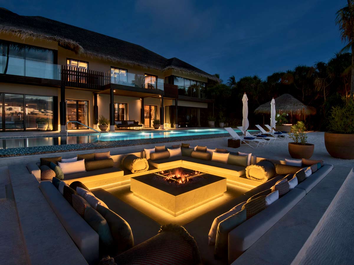 The Velaa Private Residence offers four bedrooms with a private beach, pool, and butler service.