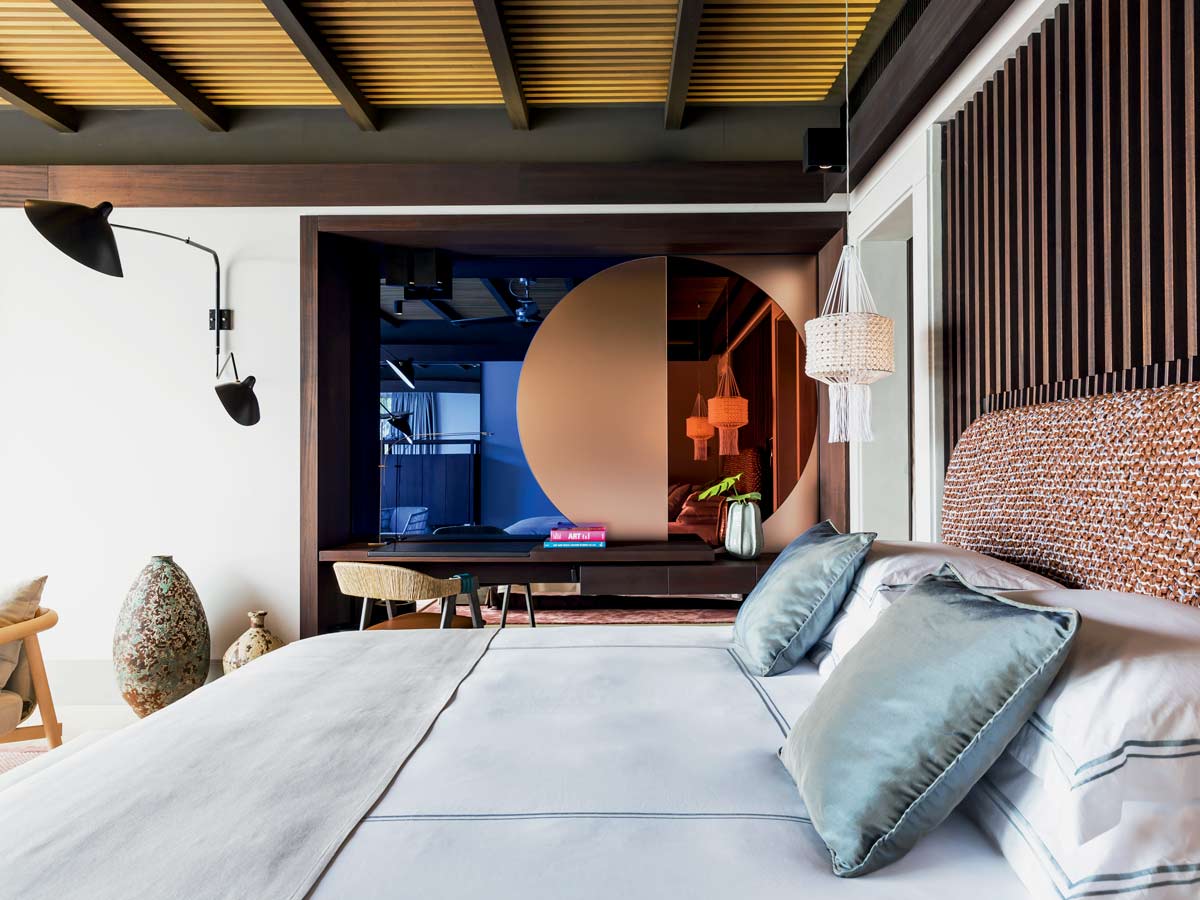 Luxurious two-story residence designed by Patricia Urquiola featuring four bedrooms, four bathrooms, a 17-meter private pool, and stunning ocean views, offering expansive space for relaxation and entertainment.