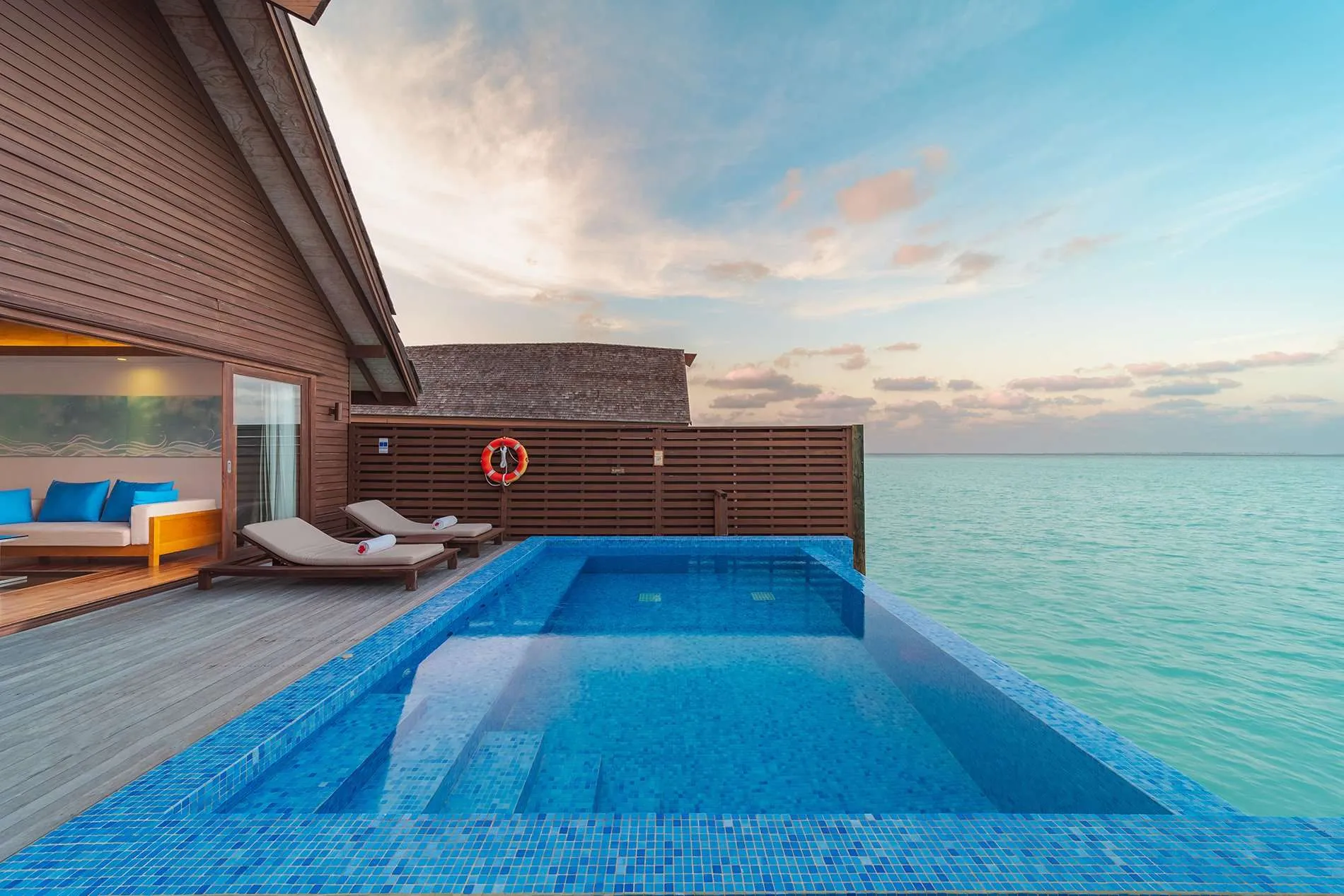 Luxurious overwater villa featuring a private infinity pool and stunning ocean views.