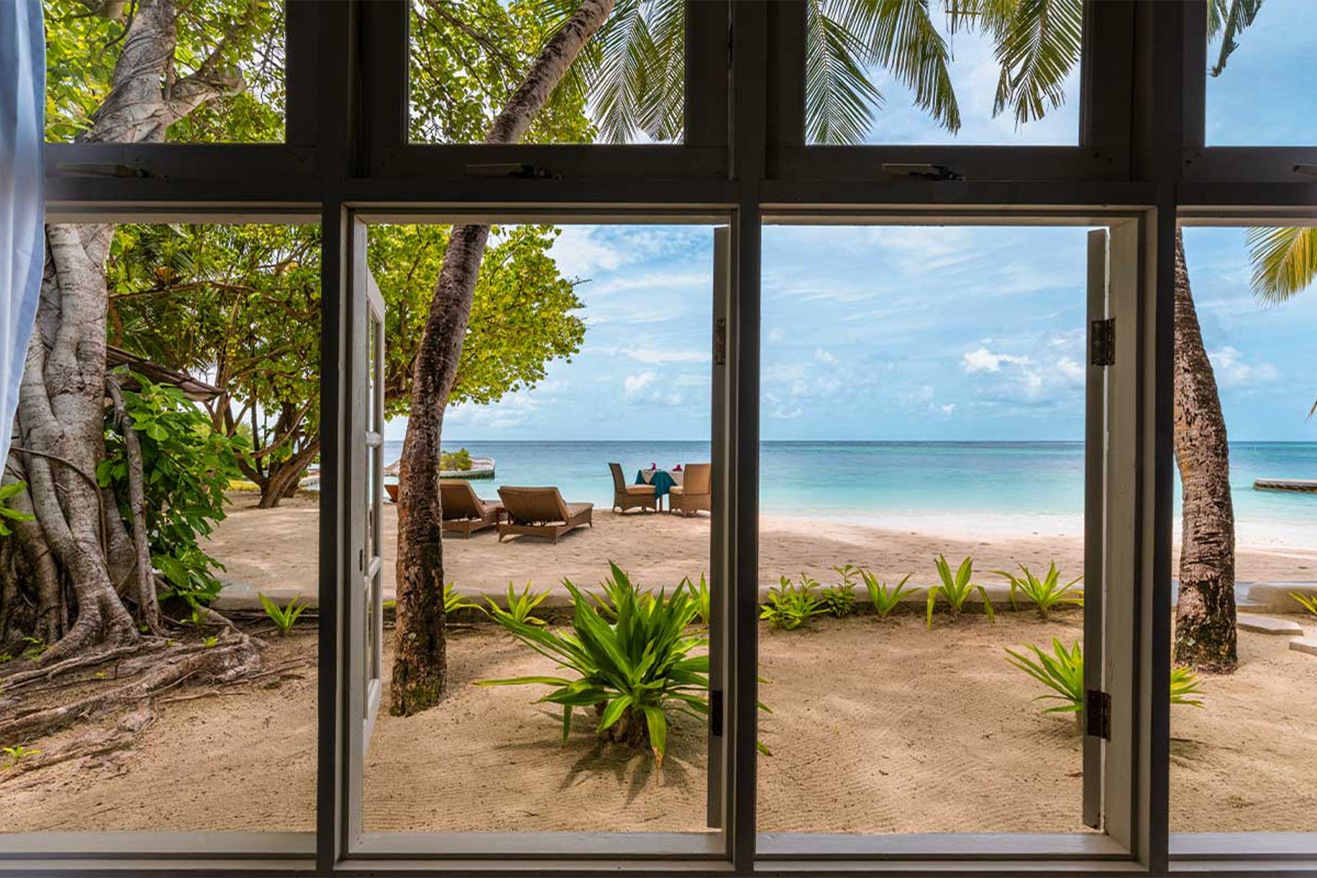 The Beach Villa offers direct access to the beach and is surrounded by lush greenery for privacy.
