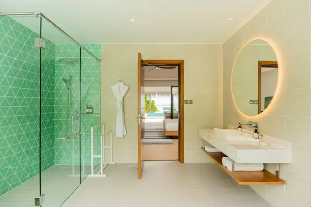 Each villa at Nova Maldives is thoughtfully designed with contemporary minimalist interiors, featuring custom-made furniture, neutral color palettes, and abundant natural light. Amenities include king-size beds with plush bedding, rainfall showers, Apple TV, high-speed internet, and private terraces offering stunning ocean views. Certain villas also feature private pools or Jacuzzis, enhancing the luxury experience.