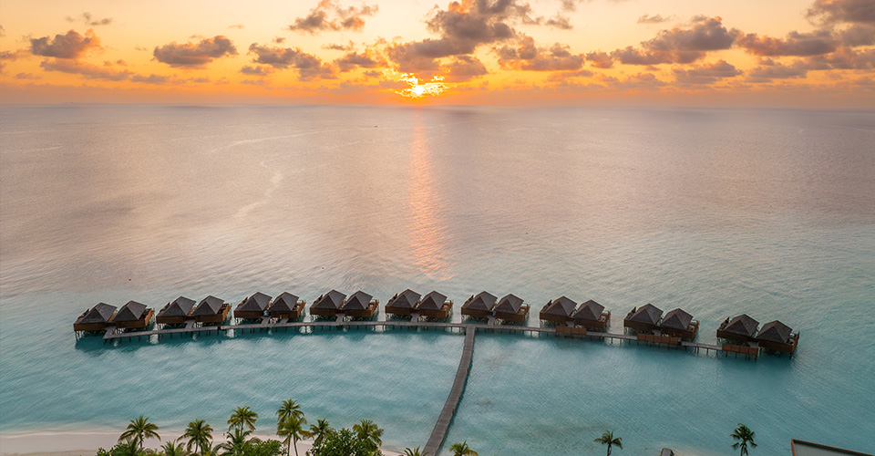 The Sunset Ocean Villas at Veligandu Maldives offer an intimate and luxurious overwater experience with a king-size bed, partially open-air bathroom with sea views, private wooden deck with an overwater hammock net, and uninterrupted sunset sea views. Ideal for couples seeking romance and tranquility.
