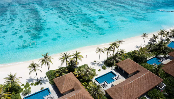 Guests can reach the resort via a 30-minute seaplane transfer from Velana International Airport (MLE) or by taking a 20-minute domestic flight to Maamigili Airport (VAM), followed by a 15-minute speedboat ride. Seaplane transfers operate during daylight hours, accommodating international flights arriving between 6 am and 3:30 pm and departing between 9 am and 8 pm. Baggage allowances and excess baggage fees apply.