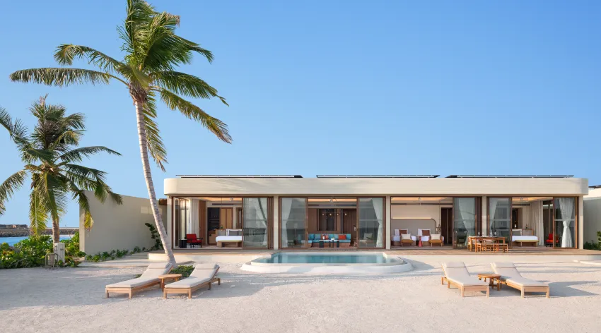 Revel in panoramic ocean views from the Grand Two-Bedroom Overwater Pool Villa, offering 166 sqm of peaceful living space, a private pool for leisurely dips, modern bathrooms, and direct access to the lagoon for a refreshing swim in the crystal-clear waters. Ideal for families or groups seeking to embrace the natural beauty of the Maldives, this villa sleeps up to 5 adults or 4 adults and 1 child.