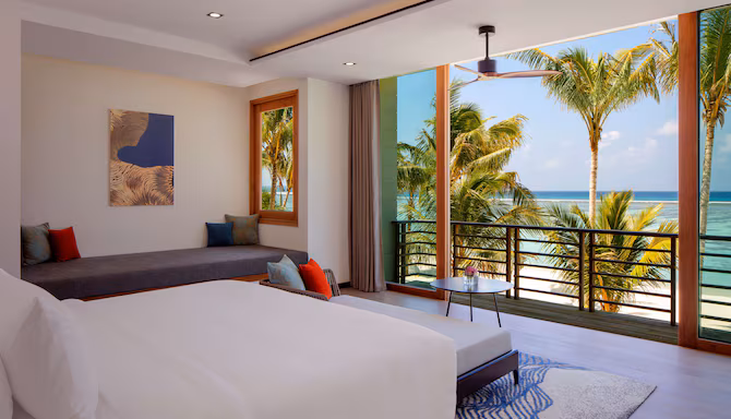 View Resort DetailsRadisson Blu Resort Maldives, located on Huruelhi Island in the South Ari Atoll, offers a luxurious escape with 128 beachfront and overwater villas, each featuring private pools. The resort provides a range of dining options, a full-service spa, and a variety of water sports and excursions, including year-round whale shark encounters. Its proximity to some of the Maldives' most vibrant coral reefs makes it an ideal destination for diving and snorkeling enthusiasts.