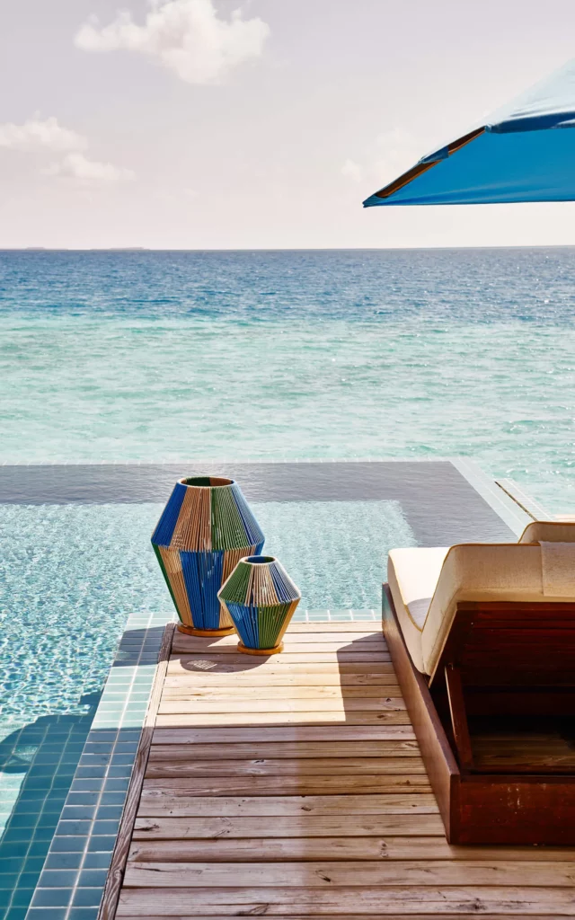 Each villa is designed with vibrant colors and natural textures, offering luxurious furnishings and a high degree of privacy. Amenities include outdoor bathrooms, rain showers, Marshall sound systems, and complimentary high-speed Wi-Fi. Many villas feature private pools and direct access to the beach or lagoon.