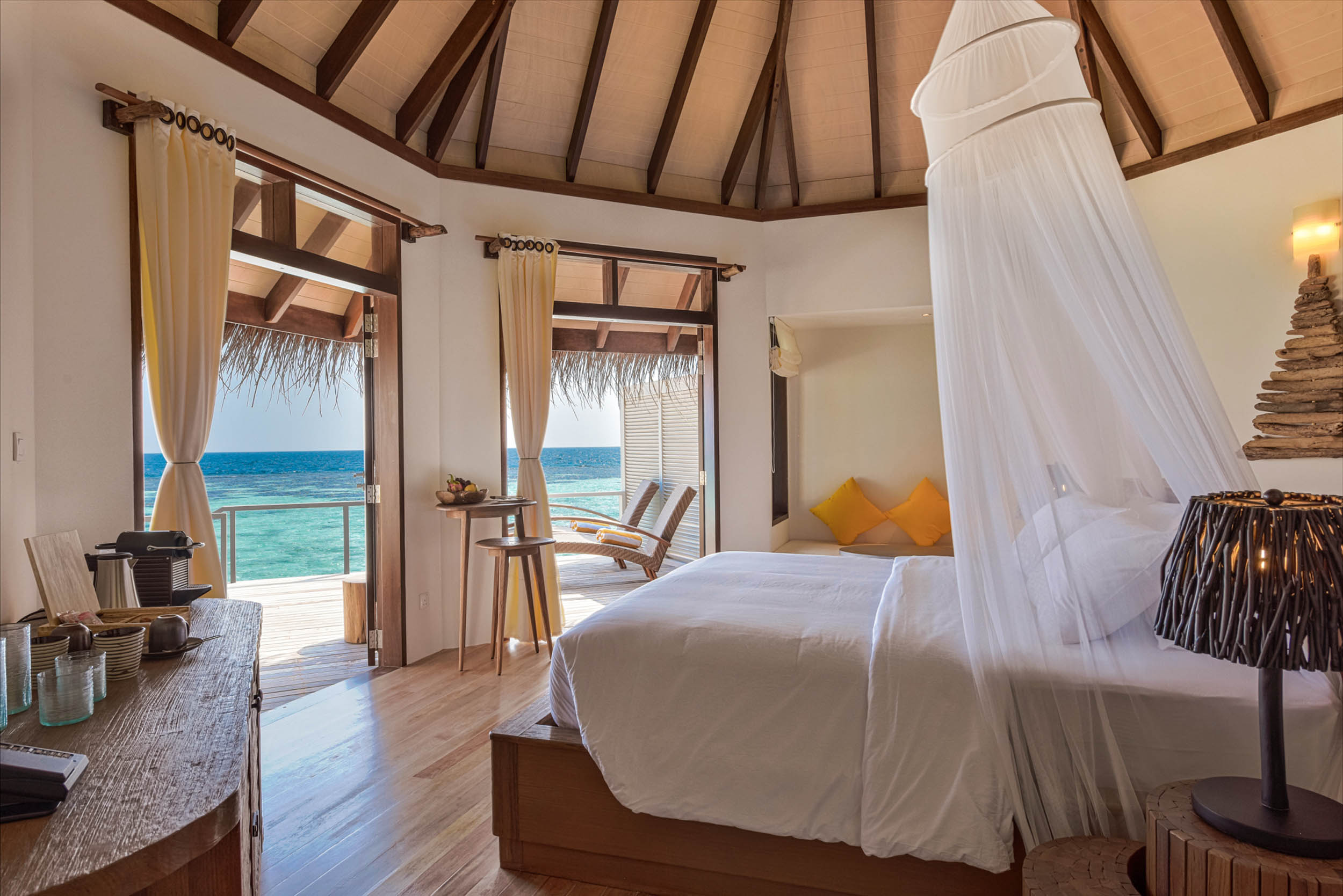 The resort's villas are designed for privacy and comfort, with the Beach Villas nestled among lush vegetation offering direct beach access, and the Water Villas perched over the lagoon with private decks. Both villa types provide king-sized beds, air conditioning, and organic bathroom amenities. Guests can enjoy a range of experiences from diving, snorkeling, and water sports to spa treatments inspired by Indonesian, Thai, and Indian traditions, alongside excursions such as sunset cruises and traditional fishing trips.