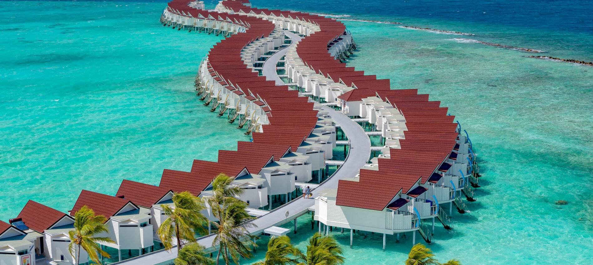 View Resort DetailsOBLU XPERIENCE Ailafushi is a vibrant, all-inclusive resort located in the North Malé Atoll, just a 15-minute speedboat ride from Velana International Airport. The resort offers 268 accommodations, including Ocean View Rooms, Beach Villas, Water Villas, and Ocean View Family Two-Bedroom units. Guests can enjoy diverse dining options, a large infinity pool, an overwater gym, and one of the largest kids' clubs in the Maldives.