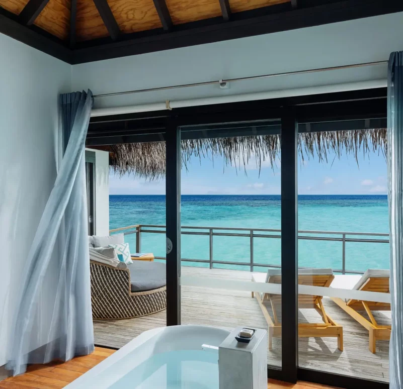 The resort is also committed to environmental sustainability, operating its own water filtration and bottling facility to reduce plastic waste. It provides a range of water sports, diving, snorkeling, excursions, and wellness experiences including an overwater spa with multiple treatment rooms and complimentary yoga classes. Multilingual staff are available 24/7 to assist guests from around the world.